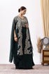 Bottle Green Crepe Draped Set with Embroidered Cape