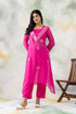 Rani Pink A-Line Kurta Set, Crafted From Luxurious Organza Fabric, It Showcases Intricate gota Patti Embroidery, Adding A Hint Of Opulence And Regal Charm. Paired With A Sleek Bustier and Trousers. This Ensemble Strikes The Perfect Balance Between Timeless Elegance And Modern Flair. Ideal For Festive Occasions And Sophisticated Gatherings Alike, This Kurta Promises A Stunning Entrance, Blending Grace, Allure, And Contemporary Fashion With Ease.