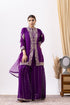 Featuring a purple tunic in silk base with zari embroidery. It is embroidered with Sharara pants and dupatta. Accentuate with statement jewellery and heels for a wedding. engagement or sangeet ceremony