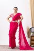 Magenta Pink Georgette Zari Embroidered Pre draped Ruffle Saree